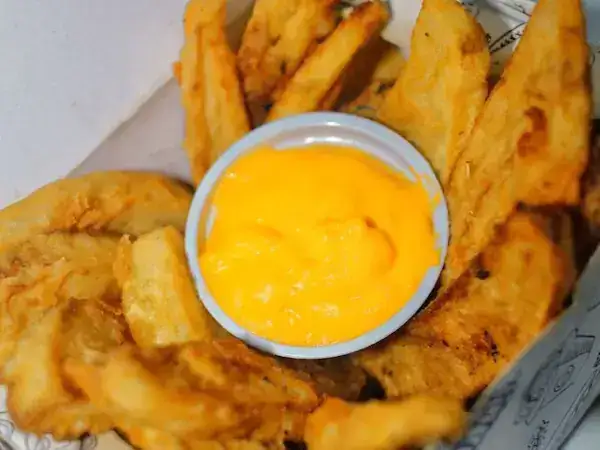 Batatas rústicas macias por dentro e com uma casquinha saborosa. Muito mais batata pra você dividir. Serve até 03 pessoas. 300g Acompanha 1 molho Cheddar.